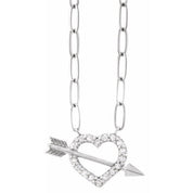 Sterling Silver 1/8 CTW Natural Diamond Heart & Arrow 16" Necklace