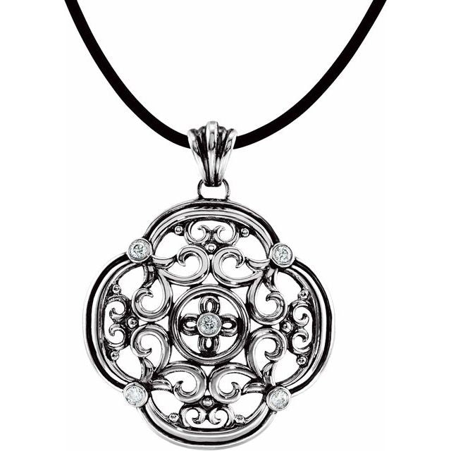 Sterling Silver 3/8 CTW Natural Diamond Filigree 18" Necklace