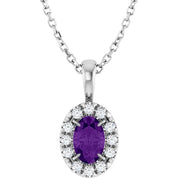 / Necklace / Set / Sterling Silver / Oval / Natural Amethyst / 6 X 4Mm :: 1/10 Ctw / Natural Diamond / I1, G-H / 16-18 In / Polished / Natural Amethyst And 1/10 Ctw Natural Diamond French-Set Halo-Style Necklace