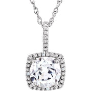 Sterling Silver 7 mm Lab-Grown White Sapphire & .015 CTW Natural Diamond 18" Necklace