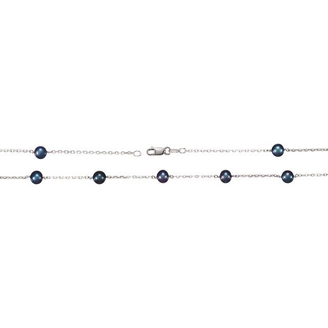 Sterling Silver Cultured Black Freshwater Pearl 14-Station 18" Necklace