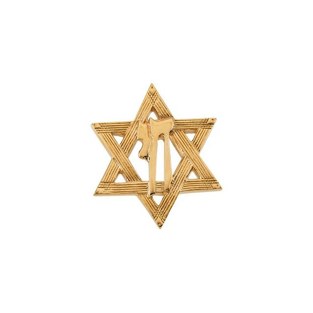 / Lapel Pin / 10K Yellow / 23.25 X 20.25 Mm / Polished / Star Of David Chai Lapel Pin