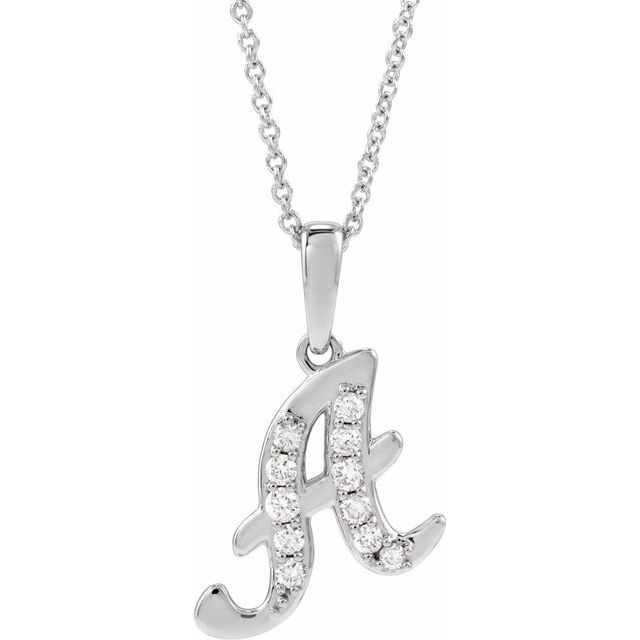 14K White 1/5 CTW Natural Diamond Initial A 18" Necklace