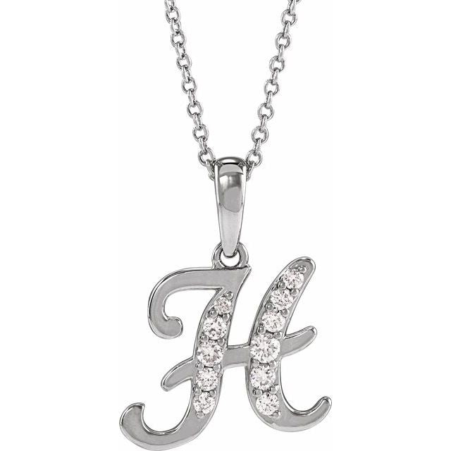 / Necklace / Set / 14K White / Initial H / Natural Diamond / Round / I1, G-H Ctw / 18 In / Polished / 1/5 Ctw Natural Diamond Initial Necklace