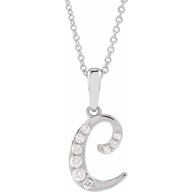 / Necklace / Set / 14K White / Initial C / Natural Diamond / Round / I1, G-H :: 1/6 Ctw / 18 In / Polished / 1/6 Ctw Natural Diamond Initial Necklace