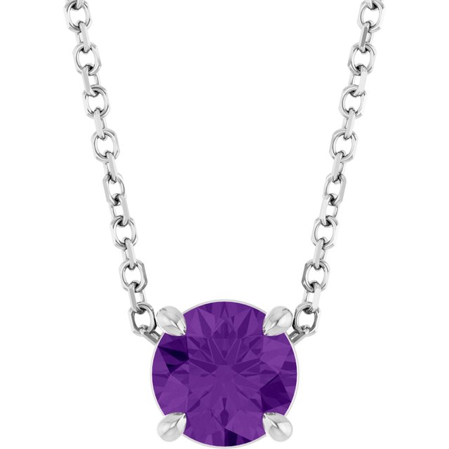 / Necklace / Set / 14K White / Round / Natural Amethyst / 5.5 Mm / 16-18 In / Polished / Natural Amethyst Solitaire Slide Necklace