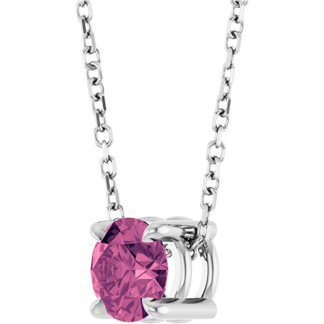 / Necklace / Set / 14K White / Round / Natural Pink Tourmaline / 5.5 Mm / 16-18 In / Polished / Natural Pink Tourmaline Solitaire Slide Necklace