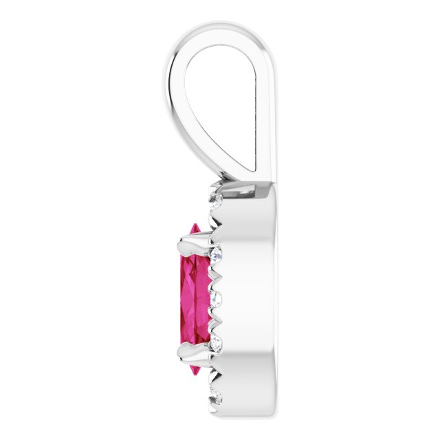 14K White 5x3 mm Lab-Grown Ruby & .05 CTW Natural Diamond Halo-Style Pendant