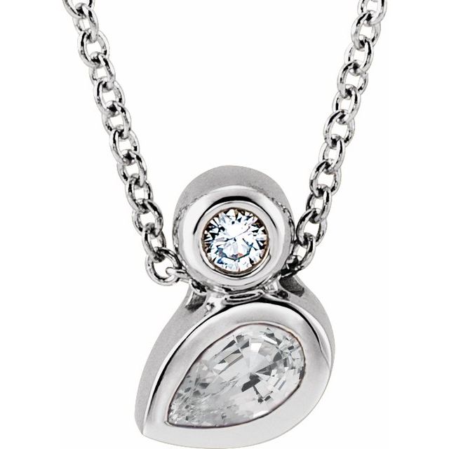 / Necklace / Set / 14K White / Pear / Natural White Sapphire / 5 X 3Mm :: 0.03 Ct / Natural Diamond / I1, G-H / 16-18 In / Polished / Natural White Sapphire And .03 Ct Natural Diamond Bezel-Set Necklace