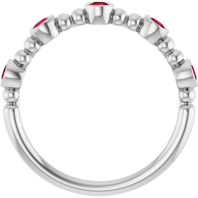 Description: Lab-Grown Ruby Stackable Beaded Ring