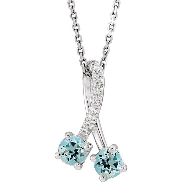 14K White Natural Aquamarine & .05 CTW Natural Diamond 16-18" Necklace