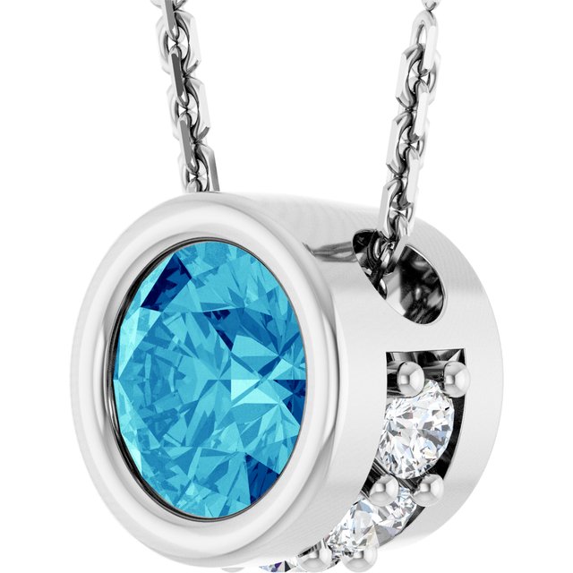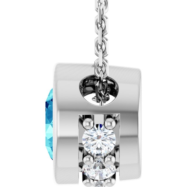 14K White Natural Blue Zircon & .07 CTW Natural Diamond 18" Necklace