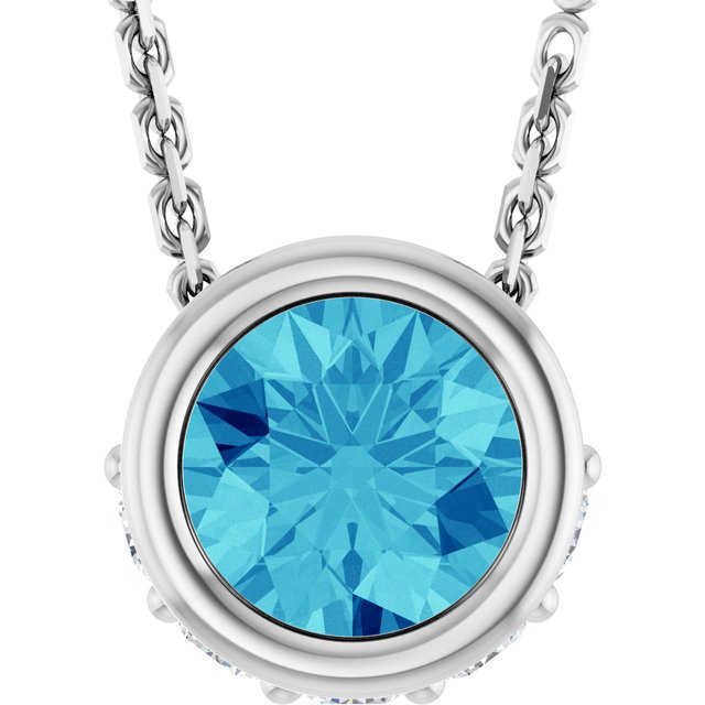 / Necklace / Set / 14K White / Round / Natural Blue Zircon / 4Mm :: 0.07 Ctw / Natural Diamond / I1, G-H / 18 In / Polished / Natural Blue Zircon And .07 Ctw Natural Diamond Hidden Halo Necklace