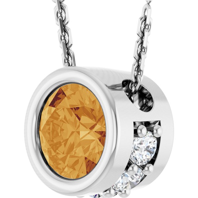 14K White Natural Citrine & .07 CTW Natural Diamond 18" Necklace