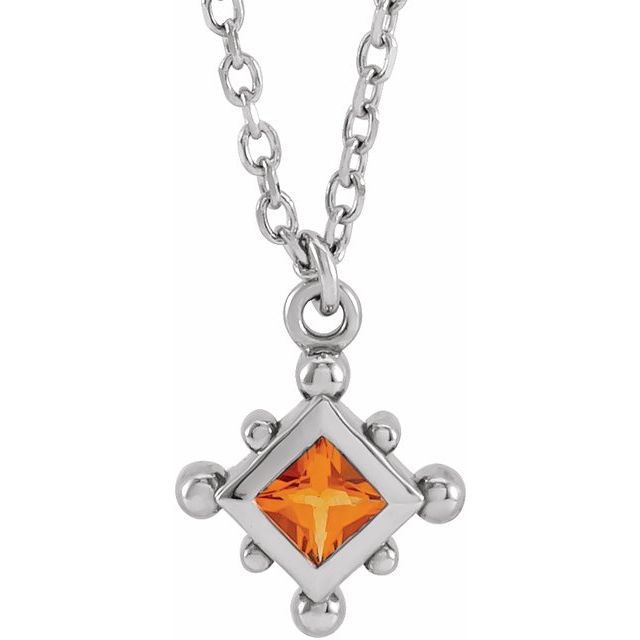 / Necklace / Set / 14K White / Square / Natural Citrine / 2.5 X 2.5 Mm / 16-18 In / Polished / Citrine Bezel-Set Necklace