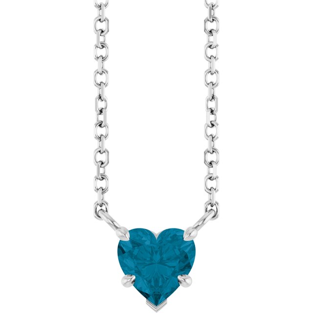 / Necklace / Set / 14K White / Heart / Natural London Blue Topaz / 5 X 5 Mm / None / 18 Mm / Polished / Natural London Blue Topaz Necklace
