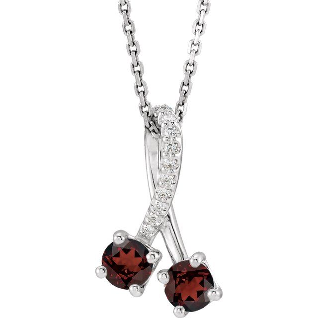 14K White Natural Mozambique Garnet & .05 CTW Natural Diamond 16-18" Necklace