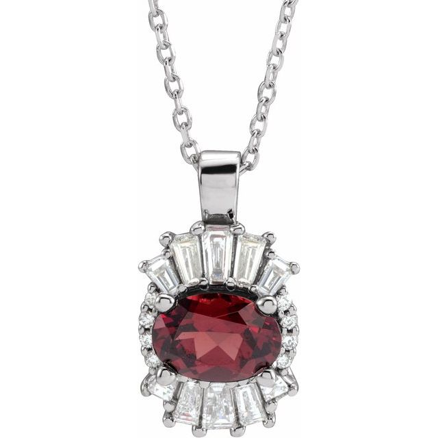 14K White Natural Mozambique Garnet & 1/3 CTW Natural Diamond 16-18" Necklace