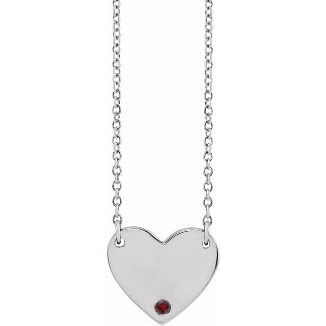 / Necklace / Set / 14K White / Round / Natural Mozambique Garnet / 1.5 Mm / 18 In / Polished / Natural Mozambique Garnet Engravable Heart Necklace