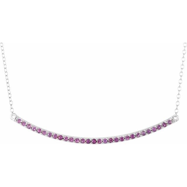 / Necklace / Set / 14K White / Round / Natural Pink Sapphire / 1.4 Mm / Natural Pink Sapphire / 16-18 In / Polished / Natural Pink Sapphire Bar Necklace
