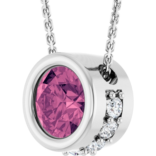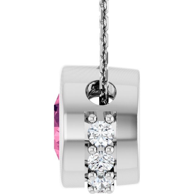 14K White Natural Pink Tourmaline & 1/10 CTW Natural Diamond 18" Necklace