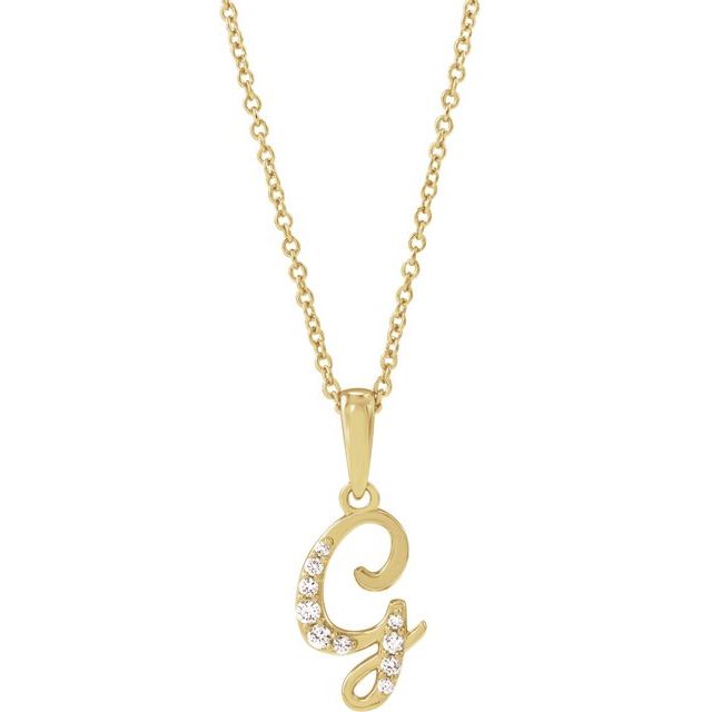 / Necklace / Set / 14K Yellow / Initial G / Natural Diamond / Round / I1, G-H Ctw / 18 In / Polished / .08 Ctw Natural Diamond Initial Necklace