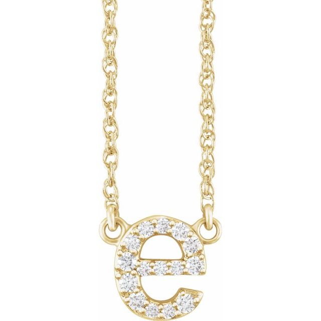 / Necklace / Set / 14K Yellow / Initial E / Natural Diamond / Round / 1.3 Mm / I1, H+ :: 0.08 Ctw / 16 In / Polished / .08 Ctw Natural Diamond Lowercase Initial Necklace