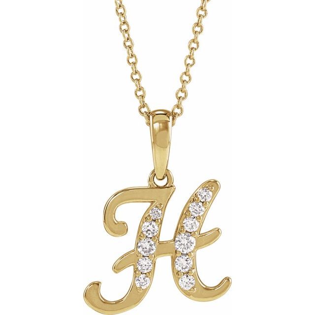 14K Yellow 1/5 CTW Natural Diamond Initial H 18" Necklace