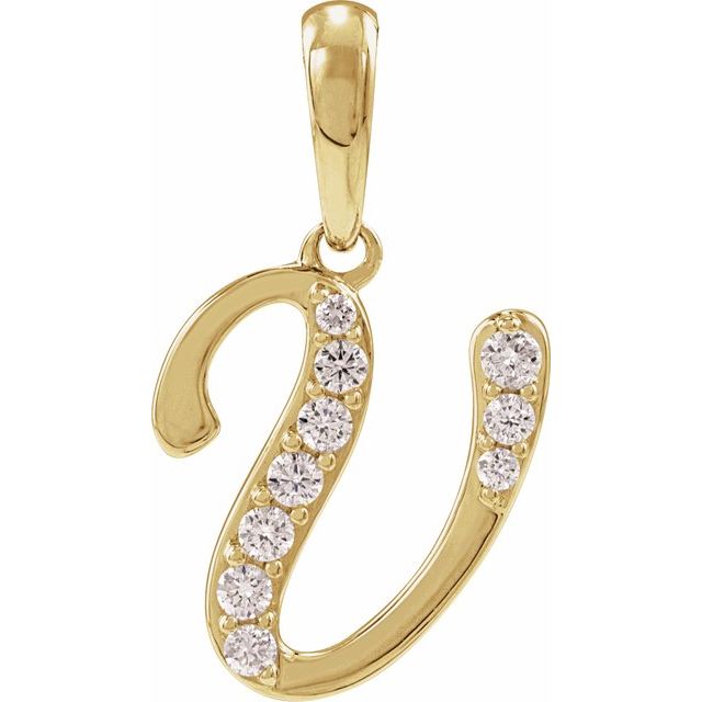 / Pendant / Set / 14K Yellow / Initial V / Natural Diamond / Round / I1, G-H Ctw / Polished / 1/8 Ctw Natural Diamond Initial Pendant