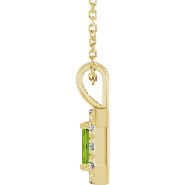 14K Yellow 5x3 mm Natural Peridot & 1/8 CTW Natural Diamond 16-18" Necklace