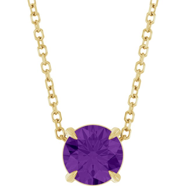 / Necklace / Set / 14K Yellow / Round / Natural Amethyst / 6 Mm / 16-18 In / Polished / Natural Amethyst Solitaire Slide Necklace