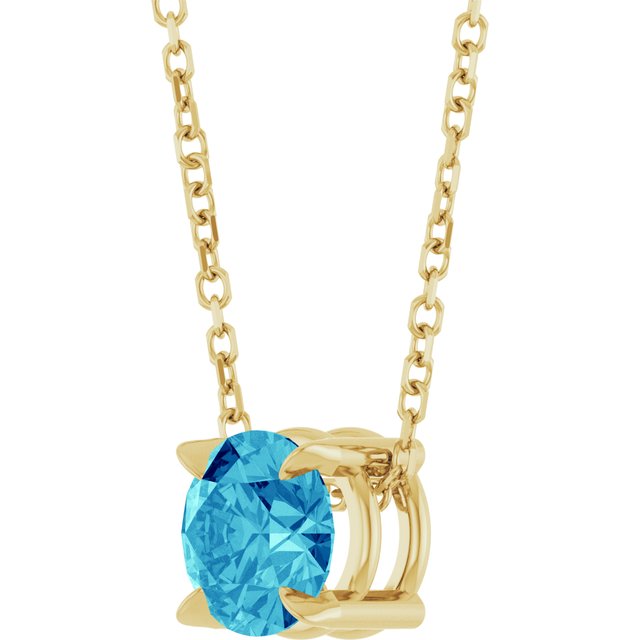 / Necklace / Set / 14K Yellow / Round / Natural Blue Zircon / 6 Mm / 16-18 In / Polished / Natural Blue Zircon Solitaire Slide Necklace