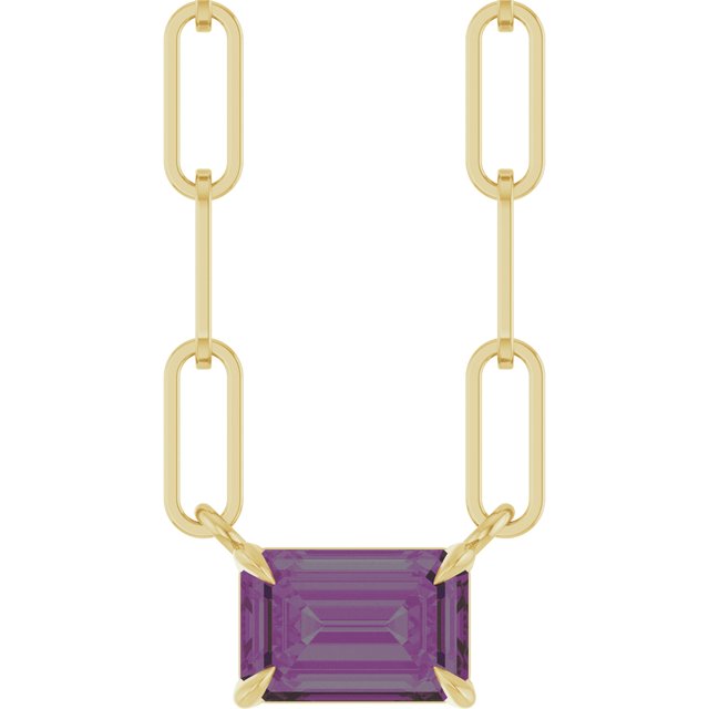 / Necklace / Set / 14K Yellow / Emerald / Lab-Grown Alexandrite / 6 X 4 Mm / 18 In / Polished / Lab-Grown Alexandrite Solitaire Claw Prong Necklace