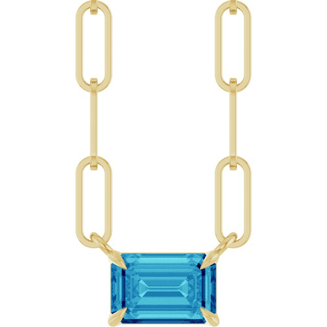 / Necklace / Set / 14K Yellow / Emerald / Natural Blue Zircon / 6 X 4 Mm / 16 In / Polished / Natural Zircon Solitaire Claw Prong Necklace
