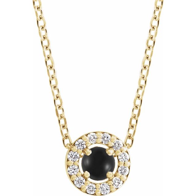 14K Yellow Cabochon Natural Black Onyx & .05 CTW Natural Diamond Halo-Style 16-18" Necklace
