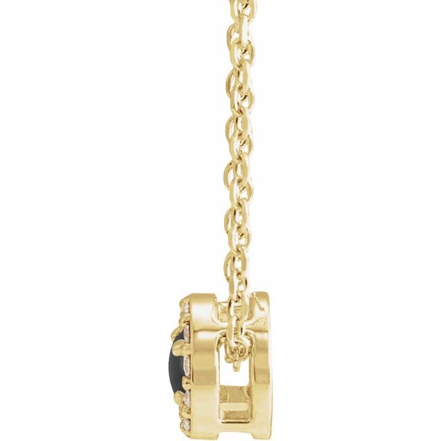 14K Yellow Cabochon Natural Black Onyx & .06 CTW Natural Diamond Halo-Style 16-18" Necklace