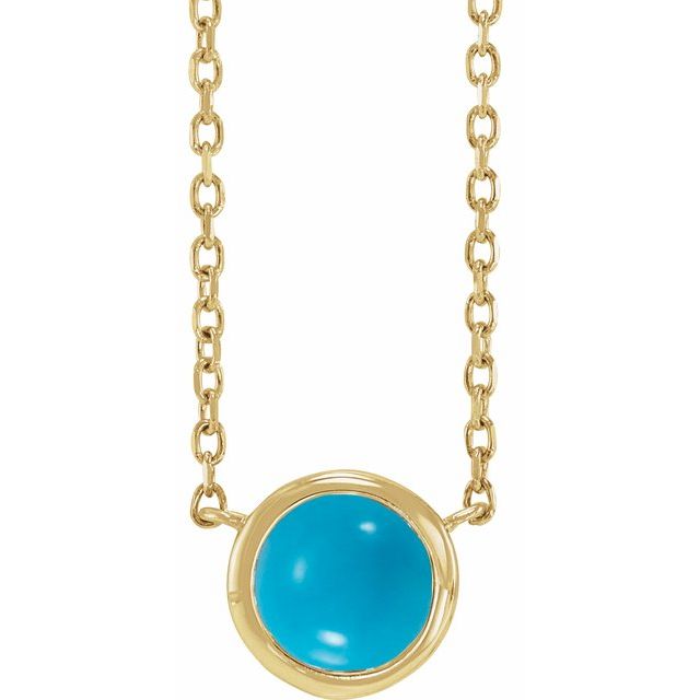 / Necklace / Set / 14K Yellow / Round / Natural Turquoise / 5 Mm / 18 In / Polished / Cabochon Natural Turquoise Solitaire Bezel-Set Necklace