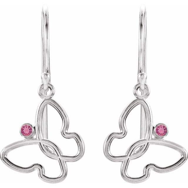 / Earring / Set / Natural Pink Tourmaline / Round / 2 Mm / 14K Yellow / Pair / Backless / Polished / Natural Pink Tourmaline Butterfly Dangle Earrings