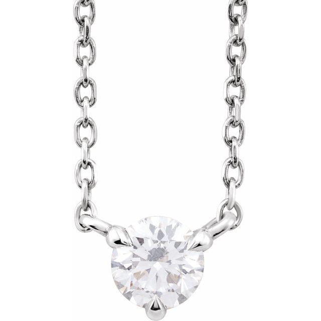 / Necklace / Set / Platinum / Round / Natural Diamond / 4Mm :: 1/5 Ct / Si2-Si3, G-H / 16-18 In / Polished / 1/5 Ct Natural Diamond 3-Prong Claw Prong Necklace