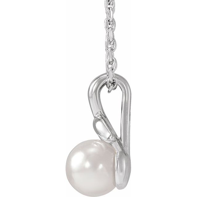 Platinum 4 mm Cultured White Akoya Pearl Floral 16-18" Necklace