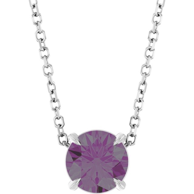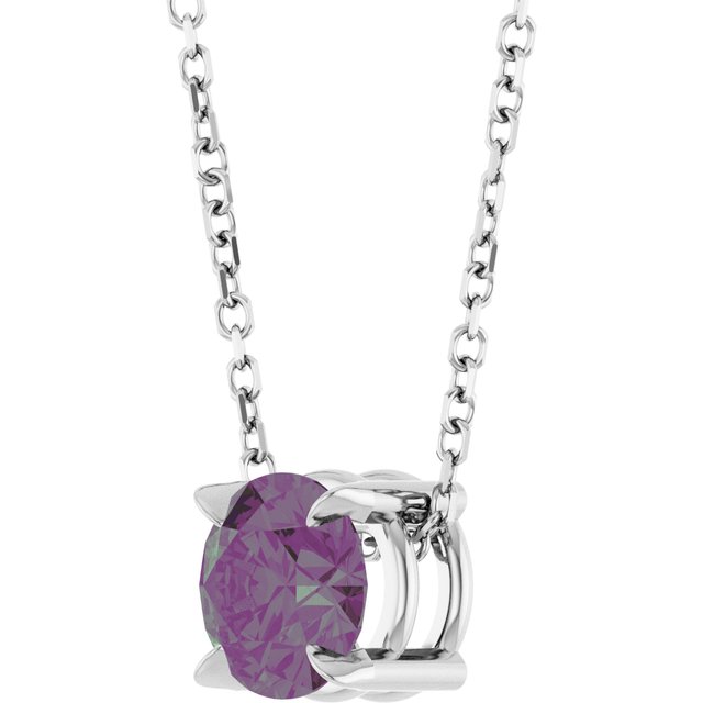 / Necklace / Set / Platinum / Round / Lab-Grown Alexandrite / 6 Mm / 16-18 In / Polished / Lab-Grown Alexandrite Solitaire Slide Necklace