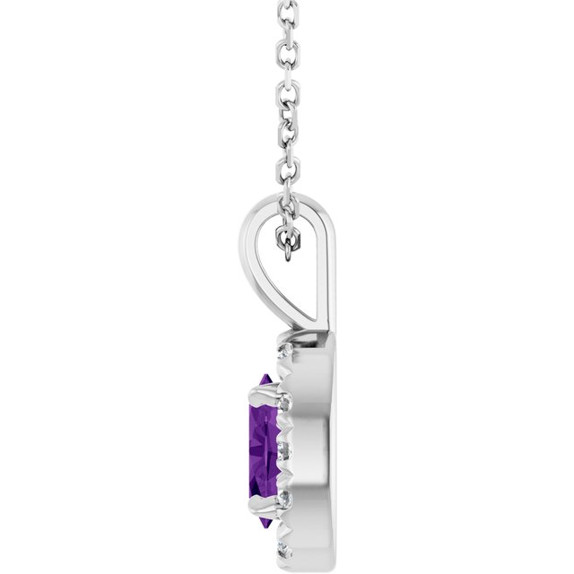 Platinum 6x4 mm Natural Amethyst & 1/10 CTW Natural Diamond 16-18" Necklace