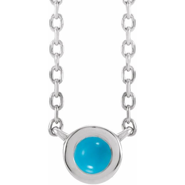 / Necklace / Set / Platinum / Round / Natural Turquoise / 3 Mm / 18 In / Polished / Cabochon Natural Turquoise Solitaire Bezel-Set Necklace