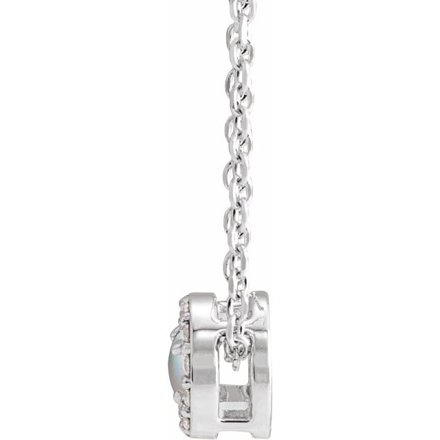 Platinum Cabochon Natural White Opal & .06 CTW Natural Diamond Halo-Style 16-18" Necklace