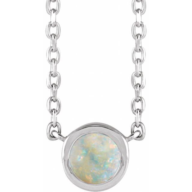 / Necklace / Set / Platinum / Round / Natural White Opal / 4 Mm / 18 In / Polished / Cabochon Natural White Opal Solitaire Bezel-Set Necklace
