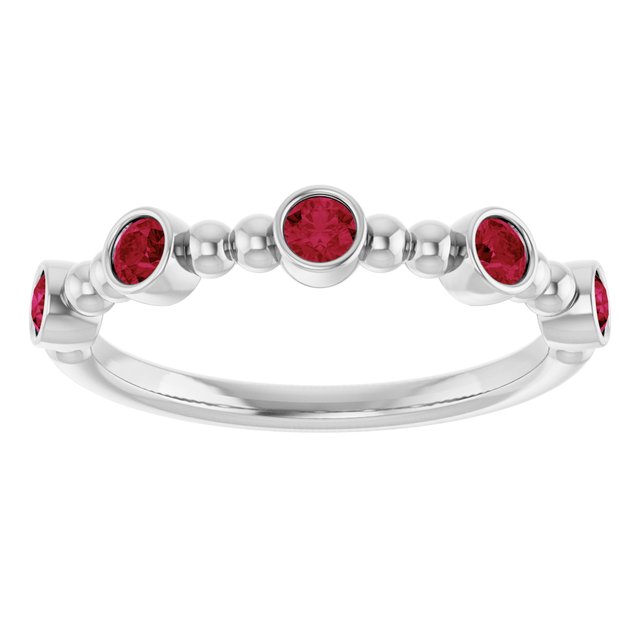 / Ring / Set / Platinum / Natural Ruby / Round / 2.5 Mm / Polished / Natural Ruby Stackable Beaded Ring