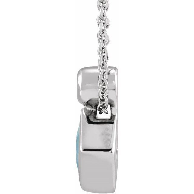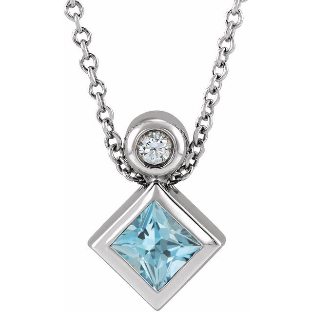 Sterling Silver 4x4 mm Square Natural Aquamarine & .03 CT Natural Diamond 16-18" Necklace