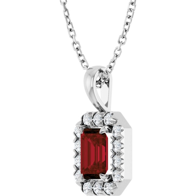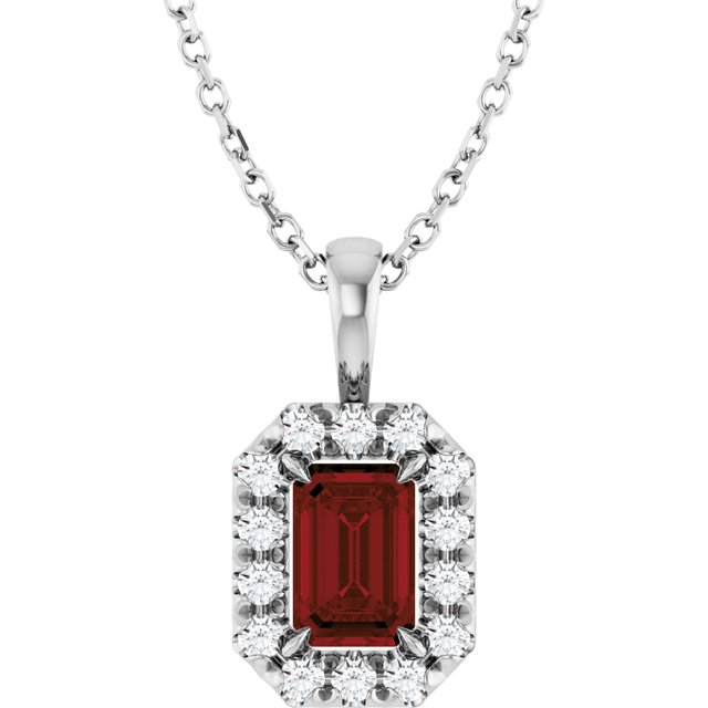 / Necklace / Set / Sterling Silver / Emerald / Natural Mozambique Garnet / 6 X 4Mm :: 1/5 Ctw / Natural Diamond / I1, G-H / 16-18 In / Polished / Natural Mozambique Garnet And 1/5 Ctw Natural Diamond French-Set Halo-Style Necklace