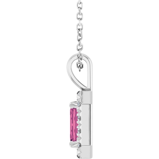 Sterling Silver 6x4 mm Natural Pink Tourmaline & 1/5 CTW Natural Diamond 16-18" Necklace