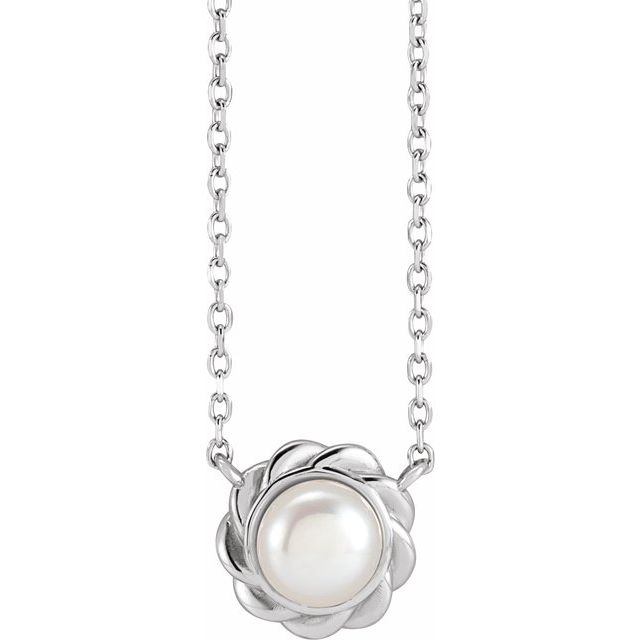 Sterling Silver Cultured White Freshwater Pearl 18" Necklace